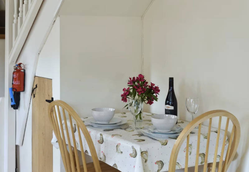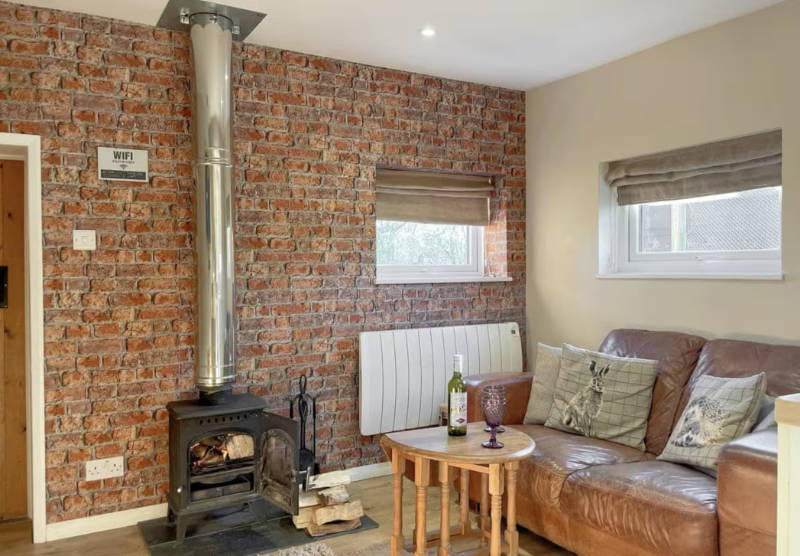 Electric heaters, electricity, bed linen, towels and Wi-Fi included. Initial logs for wood burner included. Enclosed patio with garden furniture. Lawned area (shared). 5-acre farm grounds and paddock (shared). Private parking for 1 car. No smoking.